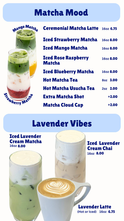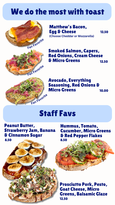 We are dedicated to sourcing the best coffee, matcha and ube. Our pastries are from local bakeries and our Simmer Toast Creations are made fresh to order.